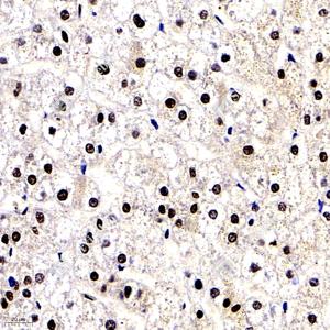 IHC检测MEK1蛋白(货号 GB11304). 样品: 人肝, 4%多聚甲醛 (货号G1101) 固定12-24小时. 抗原修复: 柠檬酸抗原修复液(干粉, pH 6.0) (G1201), 98℃, 20分钟. —抗: 1: 300稀释, 4℃ 孵育过夜. 二抗: HRP标记山羊抗兔IgG (H+L) (货号GB23303), 1: 200稀释, 室温孵育1小时. |