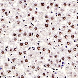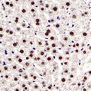 IHC检测MEK1蛋白(货号 GB11304). 样品: 小鼠肝, 4%多聚甲醛 (货号G1101) 固定12-24小时. 抗原修复: 柠檬酸抗原修复液(干粉, pH 6.0) (G1201), 98℃, 20分钟. —抗: 1: 300稀释, 4℃ 孵育过夜. 二抗: HRP标记山羊抗兔IgG (H+L) (货号GB23303), 1: 200稀释, 室温孵育1小时. |