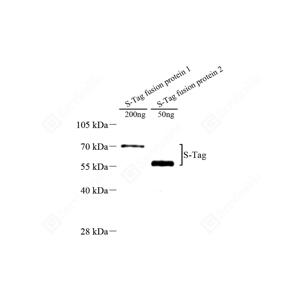 | WB 免疫印迹 | Species independent | 1: 500-1: 1000 | S标签融合蛋白1, S标签融合蛋白2, 293FT细胞, 转染的293FT细胞 |