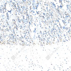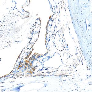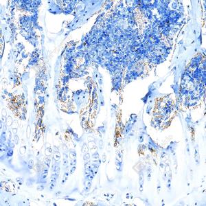 | IHC检测Cathepsin L/MEP蛋白(货号 GB155577). 样品: 小鼠骨髓, 4%多聚甲醛 (货号G1101) 固定12-24小时. 抗原修复: 抗原修复仪 (货号 ARI-4),Tris-EDTA抗原修复液(pH 9.0) (货号G1203), 水浴100℃, 25分钟. —抗: 1: 1000稀释, 4℃ 孵育过夜. 二抗: S-vision免疫组化多聚二抗(山羊抗兔),即用型 (货号G1302), 室温孵育20分钟. |