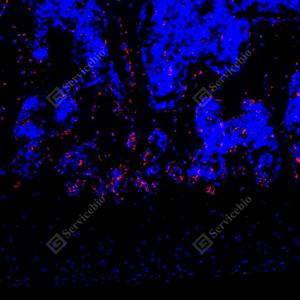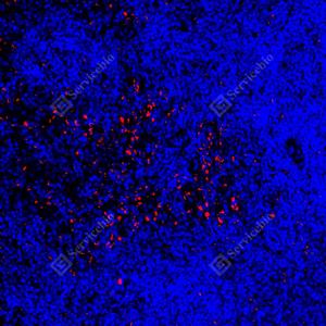 | IF检测Cathepsin L/MEP蛋白(货号 GB155577)(红色). 样品: 大鼠脾, 4%多聚甲醛 (货号G1101) 固定12-24小时. 抗原修复: 抗原修复仪 (货号 ARI-4),Tris-EDTA抗原修复液(pH 9.0) (货号G1203), 水浴90℃, 30分钟. 封闭: 3% BSA(货号GC305010)的PBS溶液, 室温孵育30分钟. —抗: 1: 1000稀释, 4℃ 孵育过夜. 二抗: Cy3标记山羊抗兔IgG (H+L) (货号GB21303), 1: 300稀释, 室温孵育1小时. |