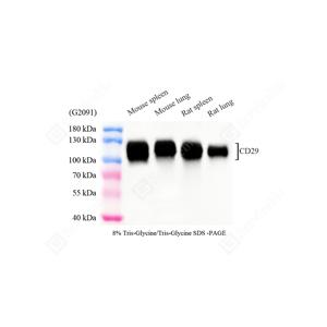 | WB检测Integrin beta 1/CD29蛋白(货号 GB155629). 样品: 经RIPA裂解液(货号G2002)处理的蛋白质. 封闭: 3%脱脂牛奶(货号GC310001)溶于TBST溶液, 室温孵育1小时. —抗: 1: 1000稀释, 4℃ 孵育过夜. 二抗: HRP标记山羊抗兔IgG (H+L) (货号GB23303), 1: 5000稀释, 室温孵育1小时. |