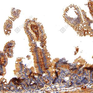 | IHC检测Integrin beta 1/CD29蛋白(货号 GB155629). 样品: 小鼠结肠, 4%多聚甲醛 (货号G1101) 固定12-24小时. 抗原修复: Tris-EDTA抗原修复液(pH 9.0) (G1203), 100℃, 25分钟. —抗: 1: 3000稀释, 4℃ 孵育过夜. 二抗: S-vision免疫组化多聚二抗(山羊抗兔),即用型 (货号G1302), 室温孵育20分钟. |