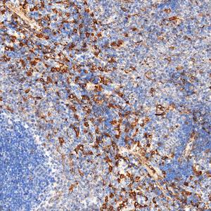 | IHC检测LRP1蛋白(货号 GB155473). 样品: 人扁桃体, 4%多聚甲醛 (货号G1101) 固定12-24小时. 抗原修复: 抗原修复仪(货号 ARI-4),Tris-EDTA抗原修复液(pH 9.0) (货号G1203), 水浴100℃, 25分钟. —抗: 1: 2000稀释, 4℃ 孵育过夜. 二抗: S-vision免疫组化多聚二抗(山羊抗兔),即用型 (货号G1302), 室温孵育20分钟. |