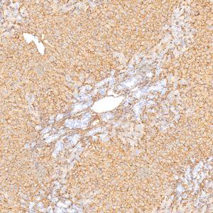 | IHC检测LRP1蛋白(货号 GB155473). 样品: 大鼠脾, 4%多聚甲醛 (货号G1101) 固定12-24小时. 抗原修复: 抗原修复仪(货号 ARI-4),Tris-EDTA抗原修复液(pH 9.0) (货号G1203), 水浴100℃, 25分钟. —抗: 1: 2000稀释, 4℃ 孵育过夜. 二抗: S-vision免疫组化多聚二抗(山羊抗兔),即用型 (货号G1302), 室温孵育20分钟. |