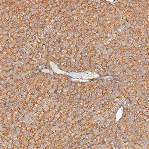 | IHC检测LRP1蛋白(货号 GB155473). 样品: 小鼠肝, 4%多聚甲醛 (货号G1101) 固定12-24小时. 抗原修复: 抗原修复仪(货号 ARI-4),Tris-EDTA抗原修复液(pH 9.0) (货号G1203), 水浴100℃, 25分钟. —抗: 1: 2000稀释, 4℃ 孵育过夜. 二抗: S-vision免疫组化多聚二抗(山羊抗兔),即用型 (货号G1302), 室温孵育20分钟. |