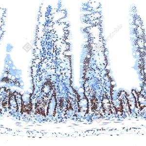 | IHC检测MSH6蛋白(货号 GB150196). 样品: 小鼠小肠, 4%多聚甲醛 (货号G1101) 固定12-24小时. 抗原修复: 抗原修复仪(货号 ARI-4),Tris-EDTA抗原修复液(pH 9.0) (货号G1203), 水浴100℃, 25分钟. —抗: 1: 2000稀释, 4℃ 孵育过夜. 二抗: S-vision免疫组化多聚二抗(山羊抗兔),即用型 (货号G1302), 室温孵育20分钟. |
