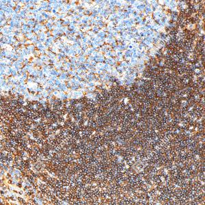 IHC检测Annexin-6/ANXA6蛋白(货号 GB151264). 样品: 人扁桃体, 4%多聚甲醛 (货号G1101) 固定12-24小时. 抗原修复: 柠檬酸抗原修复液(干粉, pH 6.0) (G1201), 高压锅均匀喷气计时2分钟. —抗: 1: 1000稀释, 4℃ 孵育过夜. 二抗: S-vision免疫组化多聚二抗(山羊抗小鼠), 即用型(货号G1301), 室温孵育20分钟. |