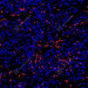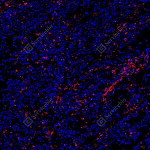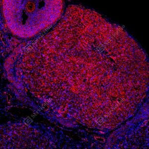 | IF检测DDX4蛋白(货号 GB150101)(红色). 样品: 人精原细胞瘤, 4%多聚甲醛 (货号G1101) 固定12-24小时. 抗原修复: Tris-EDTA抗原修复液(pH 9.0) (G1203), 100℃, 25分钟. 封闭: 3% BSA(货号GC305010)的PBS溶液, 室温孵育30分钟. —抗: 1: 1000稀释, 4℃ 孵育过夜. 二抗: Cy3标记山羊抗兔IgG (H+L) (货号GB21303), 1: 300稀释, 室温孵育1小时. |