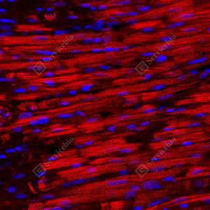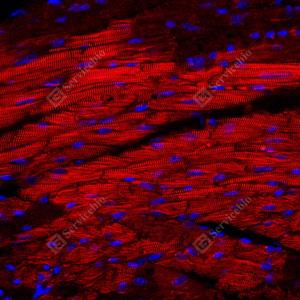 | IF检测alpha Actinin 2蛋白(货号 GB15230)(红色). 样品: 小鼠心, 4%多聚甲醛 (货号G1101) 固定12-24小时. 抗原修复: Tris-EDTA抗原修复液(pH 9.0) (G1203), 98℃, 20分钟. 封闭: 3% BSA(货号GC305010)的PBS溶液, 室温孵育30分钟. —抗: 1: 50稀释, 4℃ 孵育过夜. 二抗: Cy3标记山羊抗小鼠IgG (H+L) (货号GB21301), 1: 300稀释, 室温孵育1小时. |
