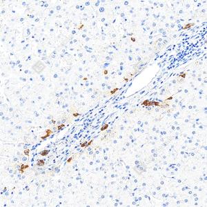 | IHC检测CA19-9蛋白(货号 GB150125). 样品: 人肝, 4%多聚甲醛 (货号G1101) 固定12-24小时. 抗原修复: Tris-EDTA抗原修复液(pH 9.0) (G1203), 100℃, 25分钟. —抗: 1: 300稀释, 4℃ 孵育过夜. 二抗: S-vision免疫组化多聚二抗(山羊抗小鼠), 即用型(货号G1301), 室温孵育20分钟. |