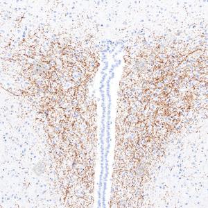 | IHC检测AGRP蛋白(货号 GB150138). 样品: 大鼠脑, 4%多聚甲醛 (货号G1101) 固定12-24小时. 抗原修复: 抗原修复仪 (货号 ARI-4),Tris-EDTA抗原修复液(pH 9.0) (货号G1203), 水浴100℃, 25分钟. —抗: 1: 500稀释, 4℃ 孵育过夜. 二抗: S-vision免疫组化多聚二抗(山羊抗兔),即用型 (货号G1302), 室温孵育20分钟. |