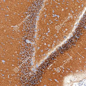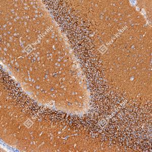 | IHC检测CAMKK1蛋白(货号 GB154010). 样品: 小鼠脑, 4%多聚甲醛 (货号G1101) 固定12-24小时. 抗原修复: 抗原修复仪 (货号 ARI-4),Tris-EDTA抗原修复液(pH 9.0) (货号G1203), 水浴100℃, 25分钟. —抗: 1: 1000稀释, 4℃ 孵育过夜. 二抗: S-vision免疫组化多聚二抗(山羊抗小鼠), 即用型(货号G1301), 室温孵育20分钟. |
