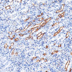 | IHC检测CAMKK1蛋白(货号 GB1504010). 样品: 小鼠肾, 4%多聚甲醛 (货号G1101) 固定12-24小时. 抗原修复: 抗原修复仪 (货号 ARI-4),Tris-EDTA抗原修复液(pH 9.0) (货号G1203), 水浴100℃, 25分钟. —抗: 1: 1000稀释, 4℃ 孵育过夜. 二抗: S-vision免疫组化多聚二抗(山羊抗小鼠), 即用型(货号G1301), 室温孵育20分钟. |