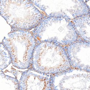 | IHC检测CAMKK1蛋白(货号 GB1504010). 样品: 大鼠睾丸, 4%多聚甲醛 (货号G1101) 固定12-24小时. 抗原修复: 抗原修复仪 (货号 ARI-4),Tris-EDTA抗原修复液(pH 9.0) (货号G1203), 水浴100℃, 25分钟. —抗: 1: 1000稀释, 4℃ 孵育过夜. 二抗: S-vision免疫组化多聚二抗(山羊抗小鼠), 即用型(货号G1301), 室温孵育20分钟. |