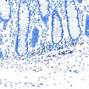 | IHC检测PAX5蛋白(货号 GB155495). 样品: 人结肠, 4%多聚甲醛 (货号G1101) 固定12-24小时. 抗原修复: Tris-EDTA抗原修复液(pH 9.0) (G1203), 100℃, 25分钟. —抗: 1: 2000稀释, 4℃ 孵育过夜. 二抗: S-vision免疫组化多聚二抗(山羊抗兔),即用型 (货号G1302), 室温孵育20分钟. |