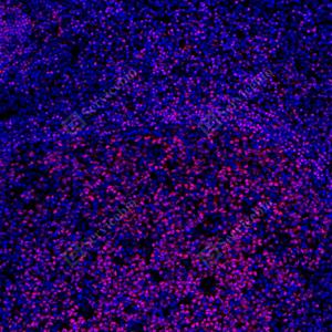 | IF检测PAX5蛋白(货号 GB155495)(红色). 样品: 大鼠脾, 4%多聚甲醛 (货号G1101) 固定12-24小时. 抗原修复: Tris-EDTA抗原修复液(pH 9.0) (G1203), 100℃, 25分钟. 封闭: 3% BSA(货号GC305010)的PBS溶液, 室温孵育30分钟. —抗: 1: 2000稀释, 4℃ 孵育过夜. 二抗: Cy3标记山羊抗兔IgG (H+L) (货号GB21303), 1: 300稀释, 室温孵育1小时. |