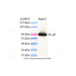| WB检测Placental alkaline phosphatase (PLAP)蛋白(货号 GB152546). 样品: 经RIPA裂解液(货号G2002)处理的蛋白质. 封闭: 3%脱脂牛奶(货号GC310001)溶于TBST溶液, 室温孵育1小时. —抗: 1: 1000稀释, 4℃ 孵育过夜. 二抗: HRP标记山羊抗兔IgG (H+L) (货号GB23303), 1: 5000稀释, 室温孵育1小时. |