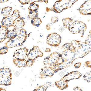 | IHC检测GSDME蛋白(货号 GB150167). 样品: 人胎盘, 4%多聚甲醛 (货号G1101) 固定12-24小时. 抗原修复: 抗原修复仪(货号 ARI-4), Tris-EDTA抗原修复液(pH 9.0) (货号G1203), 水浴100℃, 25分钟. —抗: 1: 3000稀释, 4℃ 孵育过夜. 二抗: S-vision免疫组化多聚二抗(山羊抗兔),即用型 (货号G1302), 室温孵育20分钟. |