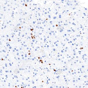 | IHC检测S100A8蛋白(货号 GB150194). 样品: 人肝, 4%多聚甲醛 (货号G1101) 固定12-24小时. 抗原修复: 抗原修复仪(货号 ARI-4),Tris-EDTA抗原修复液(pH 9.0) (货号G1203), 水浴100℃, 25分钟. —抗: 1: 1000稀释, 4℃ 孵育过夜. 二抗: S-vision免疫组化多聚二抗(山羊抗兔),即用型 (货号G1302), 室温孵育20分钟. |