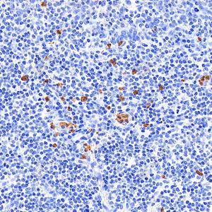 | IHC检测S100A8蛋白(货号 GB150194). 样品: 人扁桃体, 4%多聚甲醛 (货号G1101) 固定12-24小时. 抗原修复: 抗原修复仪(货号 ARI-4),Tris-EDTA抗原修复液(pH 9.0) (货号G1203), 水浴100℃, 25分钟. —抗: 1: 1000稀释, 4℃ 孵育过夜. 二抗: S-vision免疫组化多聚二抗(山羊抗兔),即用型 (货号G1302), 室温孵育20分钟. |