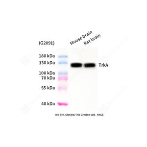 | WB检测TrkA蛋白(货号 GB150170). 样品: 经RIPA裂解液(货号G2002)处理的蛋白质. 封闭: 3%脱脂牛奶(货号GC310001)溶于TBST溶液, 室温孵育1小时. —抗: 1: 500稀释, 4℃ 孵育过夜. 二抗: HRP标记山羊抗兔IgG (H+L) (货号GB23303), 1: 5000稀释, 室温孵育1小时. |