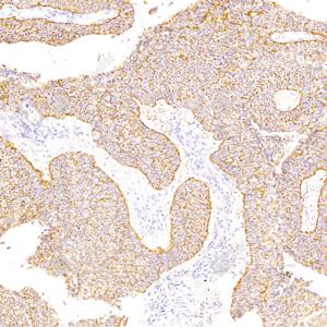 | IHC检测Claudin 1蛋白(货号 GB112543). 样品: 人肺癌, 4%多聚甲醛 (货号G1101) 固定12-24小时. 抗原修复: 柠檬酸抗原修复液(干粉, pH 6.0) (G1201), 98℃, 20分钟. —抗: 1: 1000稀释, 4℃ 孵育过夜. 二抗: HRP标记山羊抗兔IgG (H+L) (货号GB23303), 1: 200稀释, 室温孵育1小时. |