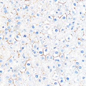 IHC检测E-cadherin蛋白(货号 GB120011). 样品: 大鼠肝, 4%多聚甲醛 (货号G1101) 固定12-24小时. 抗原修复: 柠檬酸抗原修复液(干粉, pH 6.0) (G1201), 98℃, 20分钟. —抗: 1: 500稀释, 4℃ 孵育过夜. 二抗: S-vision免疫组化多聚二抗(山羊抗小鼠), 即用型(货号G1301), 室温孵育20分钟. |