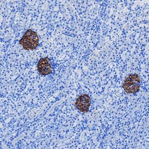 | IHC检测Nephrin蛋白(货号 GB155655). 样品: 小鼠肾, 4%多聚甲醛 (货号G1101) 固定12-24小时. 抗原修复: 抗原修复仪 (货号 ARI-4),Tris-EDTA抗原修复液(pH 9.0) (货号G1203), 水浴100℃, 25分钟. —抗: 1: 1000稀释, 4℃ 孵育过夜. 二抗: S-vision免疫组化多聚二抗(山羊抗小鼠), 即用型(货号G1301), 室温孵育20分钟. |