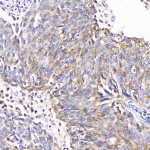 | IHC检测Claudin 4蛋白(货号 GB114056). 样品: 人子宫内膜癌, 4%多聚甲醛 (货号G1101) 固定12-24小时. 抗原修复: 柠檬酸抗原修复液(干粉, pH 6.0) (G1201), 98℃, 20分钟. —抗: 1: 1500稀释, 4℃ 孵育过夜. 二抗: HRP标记山羊抗兔IgG (H+L) (货号GB23303), 1: 200稀释, 室温孵育1小时. |