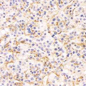 | IHC检测Claudin 4蛋白(货号 GB114056). 样品: 人肝癌, 4%多聚甲醛 (货号G1101) 固定12-24小时. 抗原修复: 柠檬酸抗原修复液(干粉, pH 6.0) (G1201), 98℃, 20分钟. —抗: 1: 1500稀释, 4℃ 孵育过夜. 二抗: HRP标记山羊抗兔IgG (H+L) (货号GB23303), 1: 200稀释, 室温孵育1小时. |