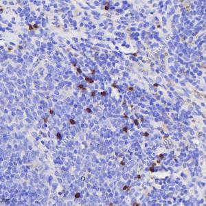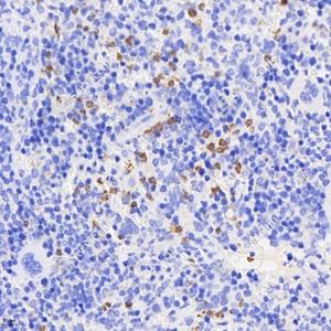 | IHC检测Annexin A1/ANXA1蛋白(货号 GB113305). 样品: 小鼠脾, 4%多聚甲醛 (货号G1101) 固定12-24小时. 抗原修复: 柠檬酸抗原修复液(干粉, pH 6.0) (G1201), 98℃, 20分钟. —抗: 1: 5000稀释, 4℃ 孵育过夜. 二抗: HRP标记山羊抗兔IgG (H+L) (货号GB23303), 1: 200稀释, 室温孵育1小时. |
