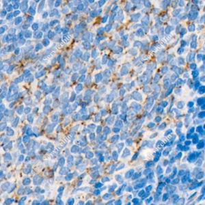IHC检测Junctional Adhesion Molecule 1/JAM-A蛋白(货号 GB111265). 样品: 大鼠脾, 4%多聚甲醛 (货号G1101) 固定12-24小时. 抗原修复: 柠檬酸抗原修复液(干粉, pH 6.0) (G1201), 98℃, 20分钟. —抗: 1: 1500稀释, 4℃ 孵育过夜. 二抗: HRP标记山羊抗兔IgG (H+L) (货号GB23303), 1: 200稀释, 室温孵育1小时. |