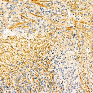 IHC检测L1CAM蛋白(货号 GB112046). 样品: 小鼠脑, 4%多聚甲醛 (货号G1101) 固定12-24小时. 抗原修复: 柠檬酸抗原修复液(干粉, pH 6.0) (G1201), 98℃, 20分钟. —抗: 1: 800稀释, 4℃ 孵育过夜. 二抗: HRP标记山羊抗兔IgG (H+L) (货号GB23303), 1: 200稀释, 室温孵育1小时. |