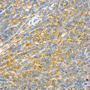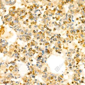 IHC检测LI Cadherin蛋白(货号 GB111125). 样品: 小鼠脾, 4%多聚甲醛 (货号G1101) 固定12-24小时. 抗原修复: 柠檬酸抗原修复液(干粉, pH 6.0) (G1201), 98℃, 20分钟. —抗: 1: 1600稀释, 4℃ 孵育过夜. 二抗: HRP标记山羊抗兔IgG (H+L) (货号GB23303), 1: 200稀释, 室温孵育1小时. |