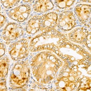 | IHC/IF 免疫组织化学/免疫荧光 | 人, 小鼠, 大鼠 | 1: 1000-1: 2000 | 胃癌, 小肠, 结肠 |