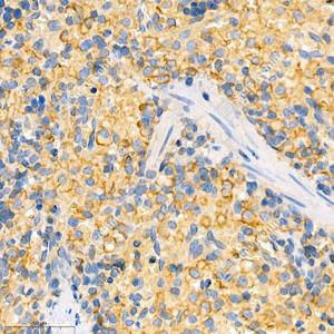 IHC检测LI Cadherin蛋白(货号 GB111125). 样品: 大鼠脾, 4%多聚甲醛 (货号G1101) 固定12-24小时. 抗原修复: 柠檬酸抗原修复液(干粉, pH 6.0) (G1201), 98℃, 20分钟. —抗: 1: 1600稀释, 4℃ 孵育过夜. 二抗: HRP标记山羊抗兔IgG (H+L) (货号GB23303), 1: 200稀释, 室温孵育1小时. |