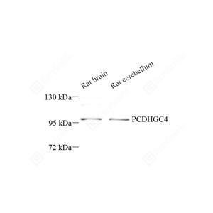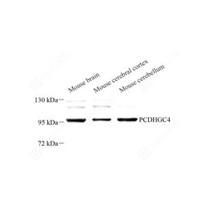 WB检测PCDHGC4蛋白(货号 GB112342). 样品: 经RIPA裂解液(货号G2002)处理的蛋白质. 封闭: 封闭: 3%脱脂牛奶(货号GC310001)溶于TBST溶液, 室温孵育1小时. —抗: 1: 500稀释, 4℃ 孵育过夜. 二抗: HRP标记山羊抗兔IgG (H+L) (货号GB23303), 1: 5000稀释, 室温孵育1小时. |