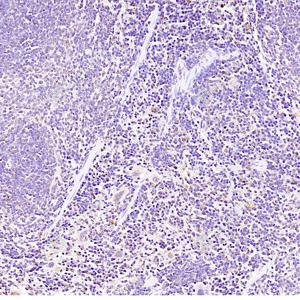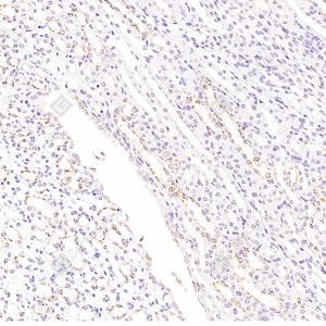 IHC检测GOLGA5/Golgin-84蛋白(货号 GB112721). 样品: 小鼠脾, 4%多聚甲醛 (货号G1101) 固定12-24小时. 抗原修复: 柠檬酸抗原修复液(干粉, pH 6.0) (G1201), 98℃, 20分钟. —抗: 1: 1300稀释, 4℃ 孵育过夜. 二抗: HRP标记山羊抗兔IgG (H+L) (货号GB23303), 1: 200稀释, 室温孵育1小时. |