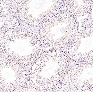 IHC检测GOLGA5/Golgin-84蛋白(货号 GB112721). 样品: 小鼠睾丸, 4%多聚甲醛 (货号G1101) 固定12-24小时. 抗原修复: 柠檬酸抗原修复液(干粉, pH 6.0) (G1201), 98℃, 20分钟. —抗: 1: 1300稀释, 4℃ 孵育过夜. 二抗: HRP标记山羊抗兔IgG (H+L) (货号GB23303), 1: 200稀释, 室温孵育1小时. |
