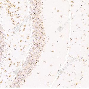 IHC检测GOLGA5/Golgin-84蛋白(货号 GB112721). 样品: 小鼠海马区, 4%多聚甲醛 (货号G1101) 固定12-24小时. 抗原修复: 柠檬酸抗原修复液(干粉, pH 6.0) (G1201), 98℃, 20分钟. —抗: 1: 1300稀释, 4℃ 孵育过夜. 二抗: HRP标记山羊抗兔IgG (H+L) (货号GB23303), 1: 200稀释, 室温孵育1小时. |