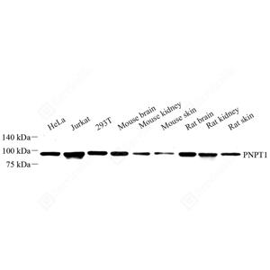 PNPT1 (polynucleotide phosphorylase1; also known as PNPASE) localizes in the mitochondrial intermembrane and regulates RNA import into mitochondria PNPT1 is also involved in mRNA degradation. As a type I IFN-inducible gene, PNPT1 plays an essential role in mediating IFN-mediated growth inhibition and inflammatory processes. Recently mutation in PNPT1 has been reported to cause hereditary hearing loss.