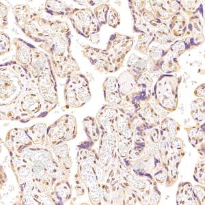 | IHC检测SUN2蛋白(货号 GB112747). 样品: 人胎盘, 4%多聚甲醛 (货号G1101) 固定12-24小时. 抗原修复: 柠檬酸抗原修复液(干粉, pH 6.0) (G1201), 98℃, 20分钟. —抗: 1: 4000稀释, 4℃ 孵育过夜. 二抗: HRP标记山羊抗兔IgG (H+L) (货号GB23303), 1: 200稀释, 室温孵育1小时. |