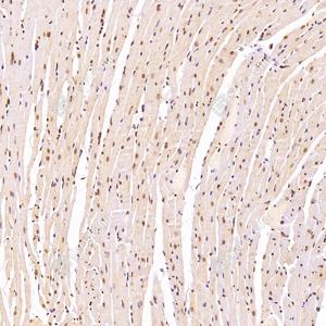 | IHC检测SUN2蛋白(货号 GB112747). 样品: 小鼠心, 4%多聚甲醛 (货号G1101) 固定12-24小时. 抗原修复: 柠檬酸抗原修复液(干粉, pH 6.0) (G1201), 98℃, 20分钟. —抗: 1: 4000稀释, 4℃ 孵育过夜. 二抗: HRP标记山羊抗兔IgG (H+L) (货号GB23303), 1: 200稀释, 室温孵育1小时. |