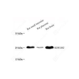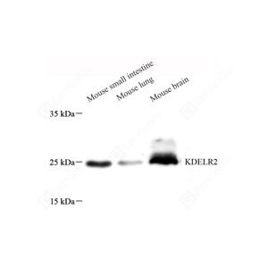 WB检测KDELR2蛋白(货号 GB115394). 样品: 经RIPA裂解液(货号G2002)处理的蛋白质. 封闭: 封闭: 3%脱脂牛奶(货号GC310001)溶于TBST溶液, 室温孵育1小时. —抗: 1: 1000稀释, 4℃ 孵育过夜. 二抗: HRP标记山羊抗兔IgG (H+L) (货号GB23303), 1: 5000稀释, 室温孵育1小时. |