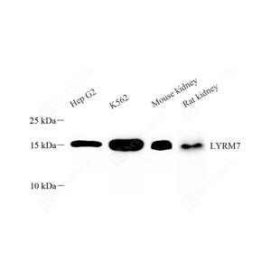 WB检测LYRM7蛋白(货号 GB115266). 样品: 经RIPA裂解液(货号G2002)处理的蛋白质. 封闭: 封闭: 3%脱脂牛奶(货号GC310001)溶于TBST溶液, 室温孵育1小时. —抗: 1: 300稀释, 4℃ 孵育过夜. 二抗: HRP标记山羊抗兔IgG (H+L) (货号GB23303), 1: 5000稀释, 室温孵育1小时. |