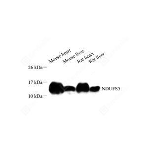 WB检测NDUFS5蛋白(货号 GB111474). 样品: 经RIPA裂解液(货号G2002)处理的蛋白质. 封闭: 封闭: 3%脱脂牛奶(货号GC310001)溶于TBST溶液, 室温孵育1小时. —抗: 1: 500稀释, 4℃ 孵育过夜. 二抗: HRP标记山羊抗兔IgG (H+L) (货号GB23303), 1: 5000稀释, 室温孵育1小时. |