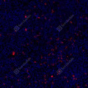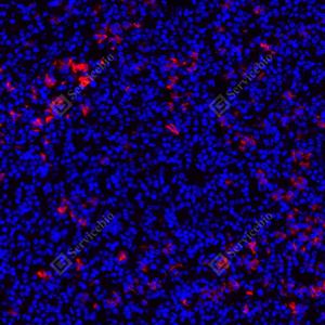 IF检测CYP2D6蛋白(货号 GB112045)(红色). 样品: 小鼠脑垂体, 4%多聚甲醛 (货号G1101) 固定12-24小时. 抗原修复: Tris-EDTA抗原修复液(pH 9.0) (G1203), 98℃, 20分钟. 封闭: 3% BSA(货号GC305010)的PBS溶液, 室温孵育30分钟. —抗: 1: 3000稀释, 4℃ 孵育过夜. 二抗: Cy3标记山羊抗兔IgG (H+L) (货号GB21303), 1: 300稀释, 室温孵育1小时. |