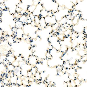 IHC检测mSin3A蛋白(货号 GB11968). 样品: 小鼠肺, 4%多聚甲醛 (货号G1101) 固定12-24小时. 抗原修复: 柠檬酸抗原修复液(干粉, pH 6.0) (G1201), 98℃, 20分钟. —抗: 1: 100稀释, 4℃ 孵育过夜. 二抗: HRP标记山羊抗兔IgG (H+L) (货号GB23303), 1: 200稀释, 室温孵育1小时. |
