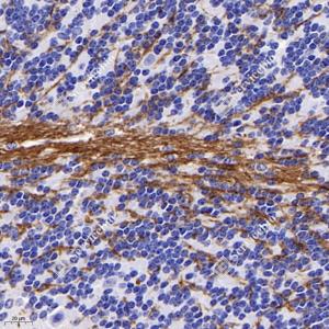IHC检测PGS1蛋白(货号 GB113732). 样品: 小鼠小脑, 4%多聚甲醛 (货号G1101) 固定12-24小时. 抗原修复: 柠檬酸抗原修复液(干粉, pH 6.0) (G1201), 98℃, 20分钟. —抗: 1: 600稀释, 4℃ 孵育过夜. 二抗: HRP标记山羊抗兔IgG (H+L) (货号GB23303), 1: 200稀释, 室温孵育1小时. |